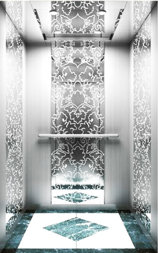 Cabin Wall : Titanium mirror stainless steel, leaf and right titanium mirror etching st.